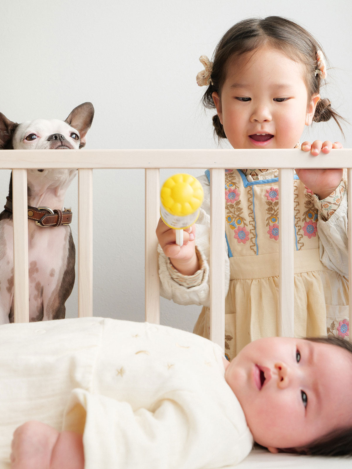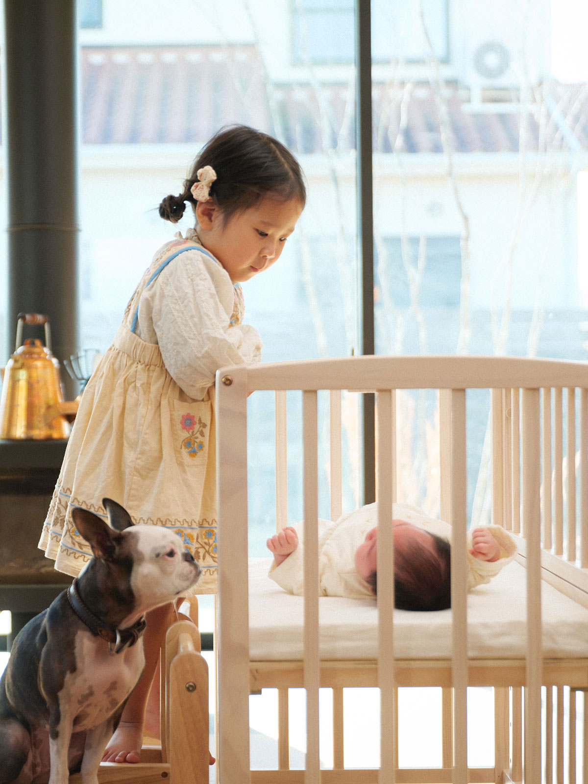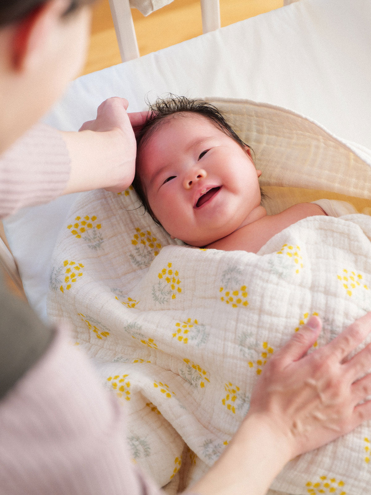 リビングを、 赤ちゃんの寝室に。 まいにち16時間以上を眠って過ごす 生まれたての赤ちゃん。 「リビングやキッチンで家事をしている時も、 すぐそばにいてあげたい」 そんな気持ちを叶える、 コンパクト設計※のリビングコット。 赤ちゃんとママ・パパの心配は小さく、小さく。 喜びは大きく、いっぱいに。 ※リビングコットは、yamatoyaのベビーベッド史上最小サイズです。