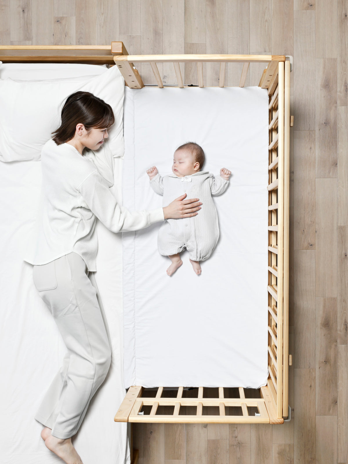 防水シーツはマットレスを蒸れから防ぎ、その上から重ねるWガーゼは、通気性、吸水性、速乾性に優れ、赤ちゃんの快適な睡眠環境づくりに最適です。