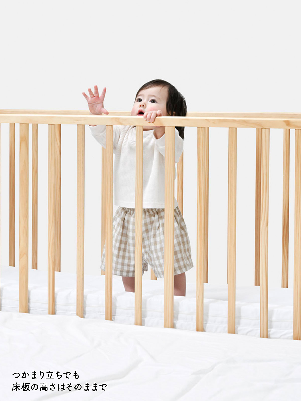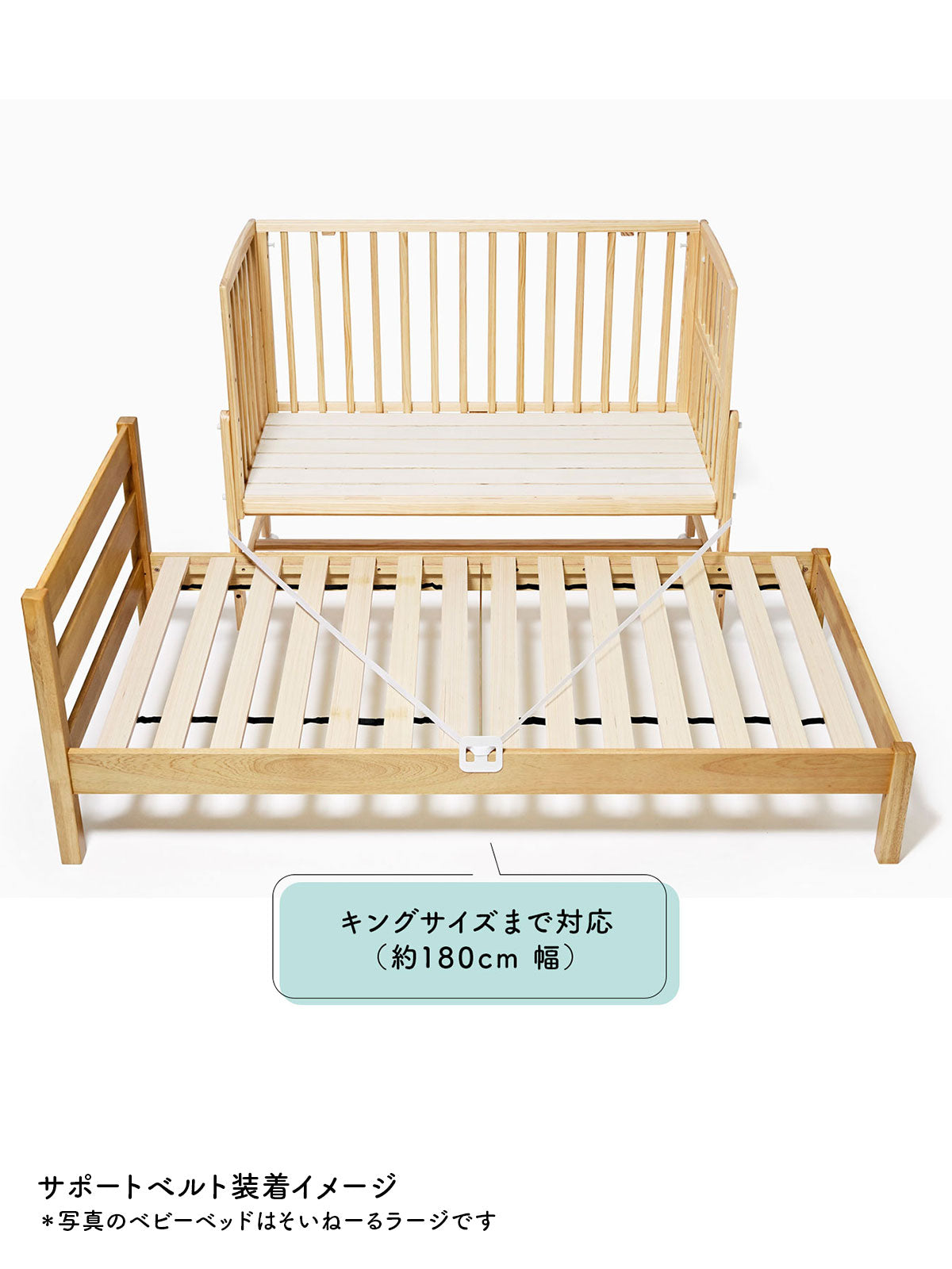 備考 | 前枠取り外し式、妻枠開閉扉付き 床板すのこ仕様 PSC ・SG検査に合格(新生児~24か月対象) サイドマットレス付シーツ付属(洗濯不可) *敷きマットレスは付属しておりません。 取り付け可能ベッドサイズ:幅180cm、床からマットレス上面までの高さ66cmまで。フレームはみ出し2.5cm未満 *対応サイズ以外の場合、サポートベルトが取り付けできません。 *床に傷がつきやすい場合、敷物を敷いて使用してください。 *複数人数(複数のお子さま)、大人の方の過度の荷重等はおやめください。 【商標登録】 第5983216号/第5983217号 【実用新案】 第3231508号 |