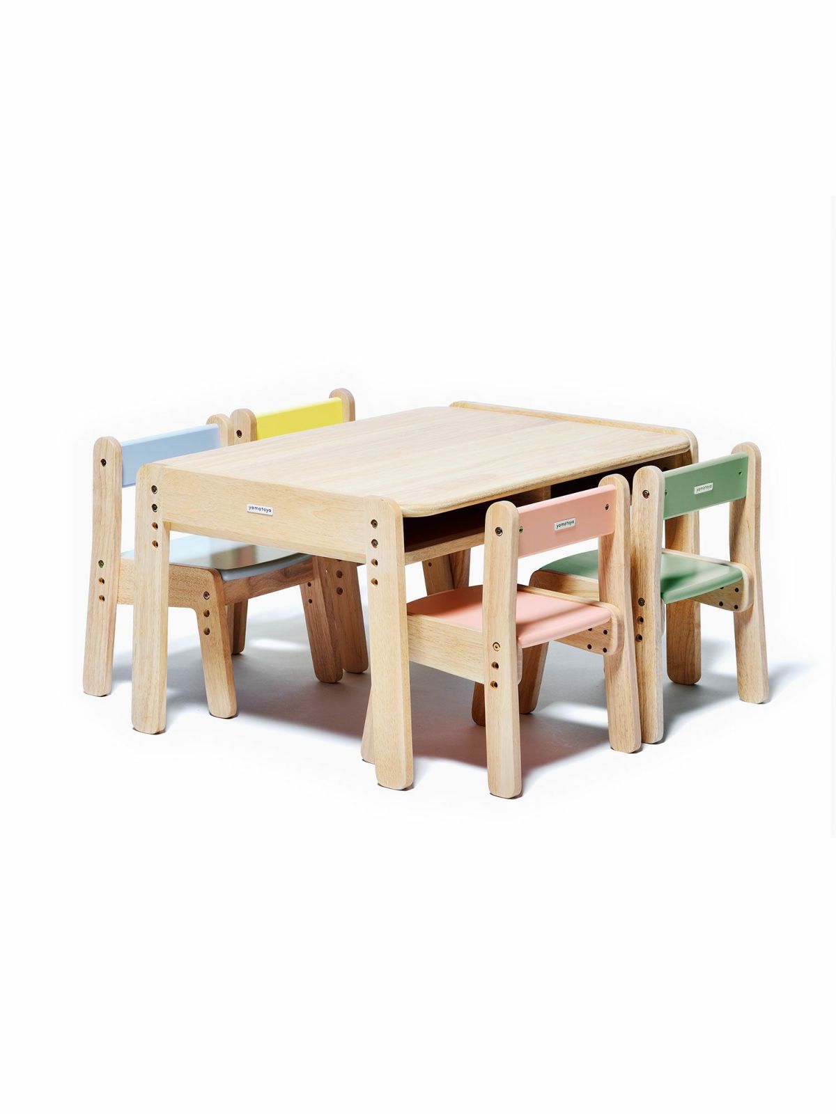テーブルとデスク、チェアは3段階で高さ調整ができます。