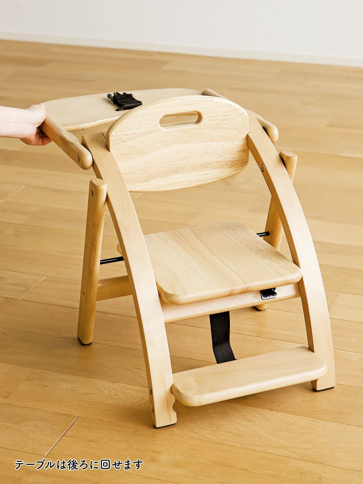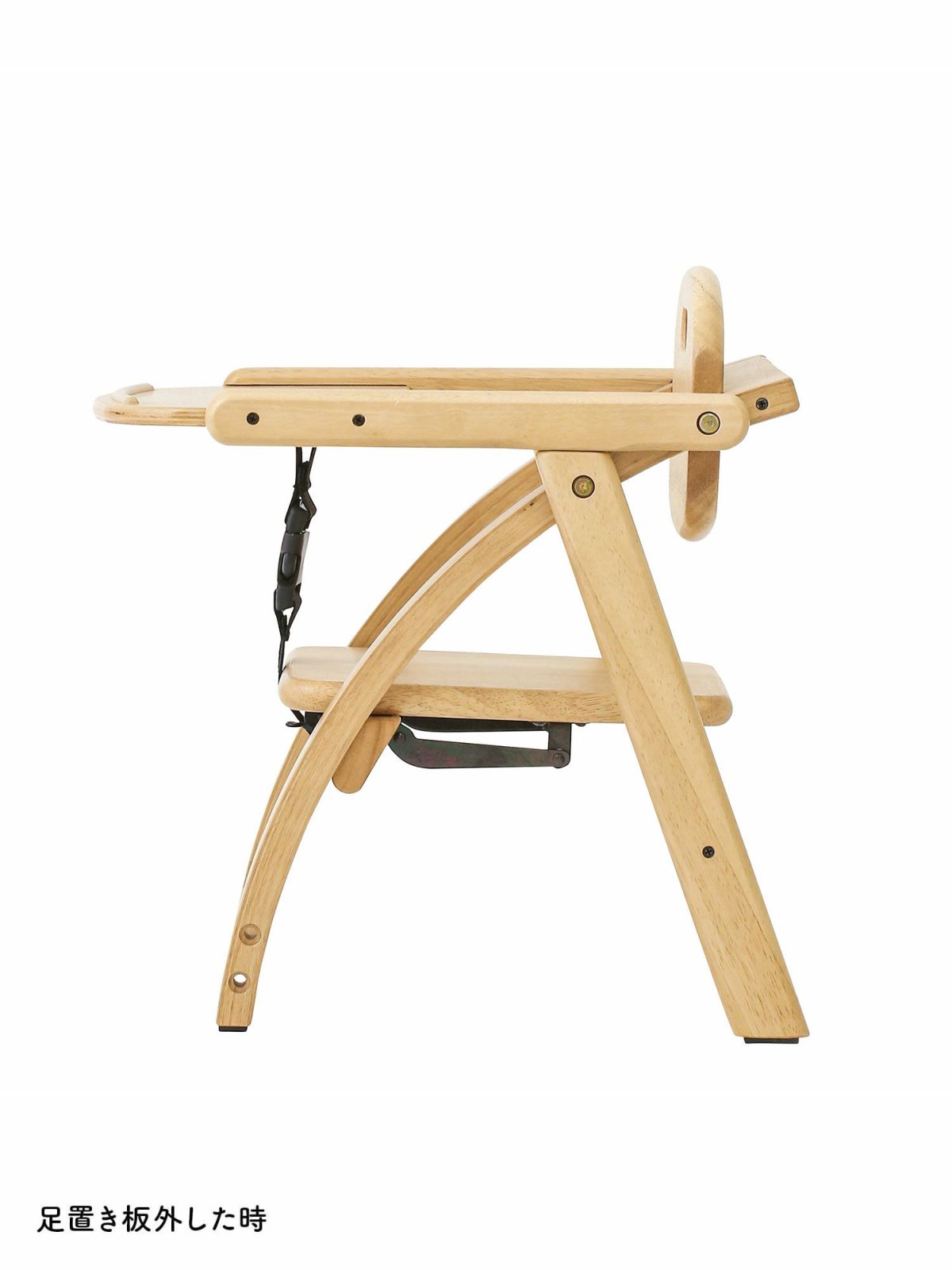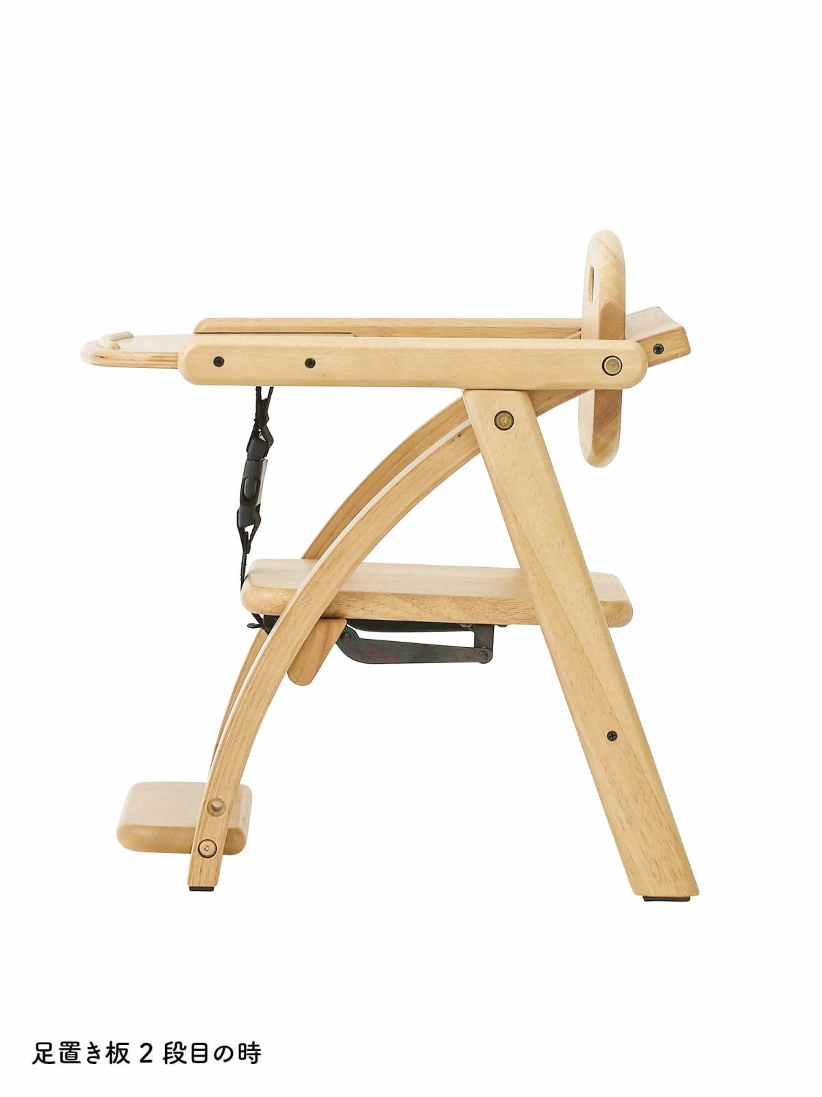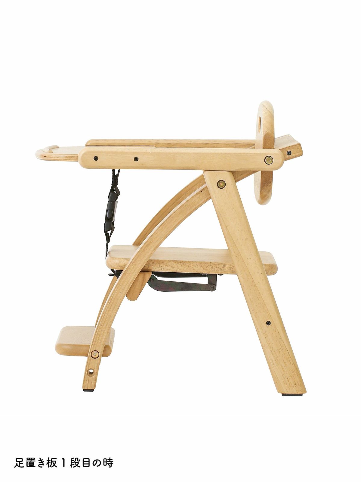 18万人以上のお子さまを支えてきた折りたたみができるローチェアがリニューアル。使いやすい機能はそのままに、姿勢よく座るための足置き板を新たに加え、より安心して座れる設計となりました。成長に合わせて足置き板は2段階の高さ調整が可能。テーブルがあることで食事が取りやすく、遊び場としても活用できます。折りたたみができるので、持ち運びもしやすく、帰省先など車でのお出かけ時にも使うことができます。親子の目線が近くなり、リビングでくつろぐ床暮らしのスタイルにもピッタリ。3才頃までお使いいただけます。