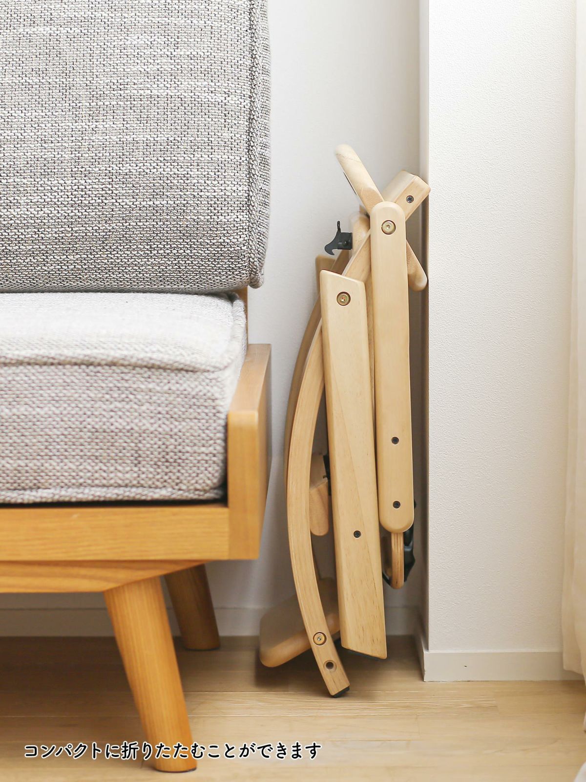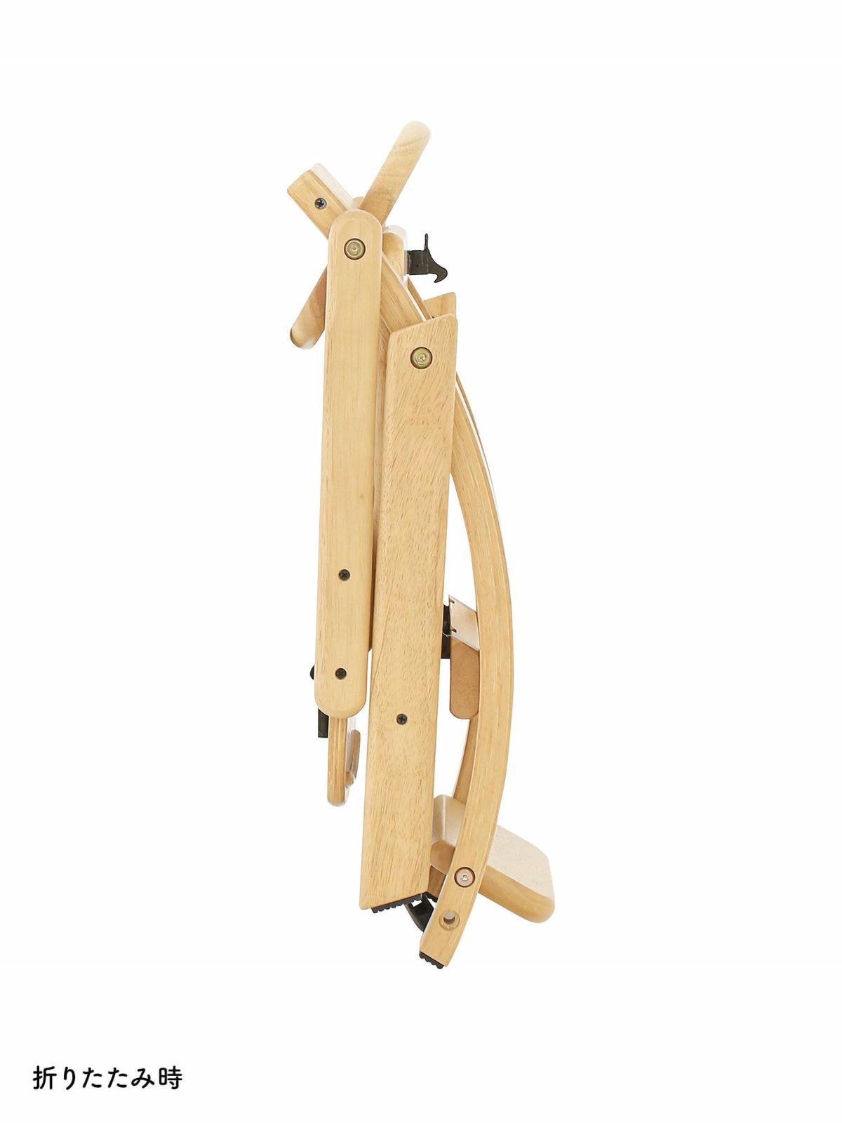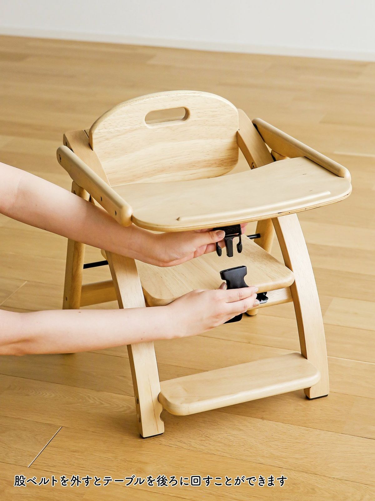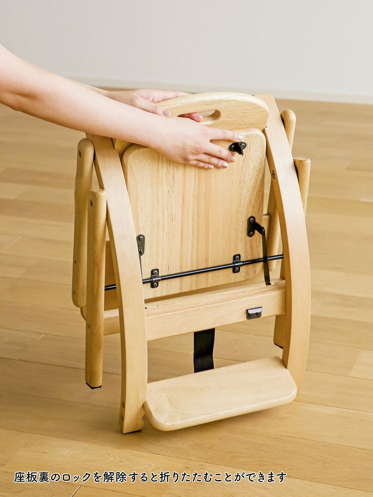 18万人以上のお子さまを支えてきた折りたたみができるローチェアがリニューアル。使いやすい機能はそのままに、姿勢よく座るための足置き板を新たに加え、より安心して座れる設計となりました。成長に合わせて足置き板は2段階の高さ調整が可能。テーブルがあることで食事が取りやすく、遊び場としても活用できます。折りたたみができるので、持ち運びもしやすく、帰省先など車でのお出かけ時にも使うことができます。親子の目線が近くなり、リビングでくつろぐ床暮らしのスタイルにもピッタリ。3才頃までお使いいただけます。